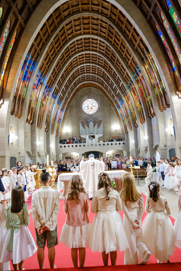 A comunhão tem uma particularidade: é um evento familiar com ritmo de cerimónia. Há partes muito formais (entrada, altar, bênção), momentos que não se repetem e instantes emotivos que aparecem sem aviso - um olhar para os pais, o nervosismo antes de entrar, a avó a apertar a mão, os amigos a brincar quando a atenção relaxa.